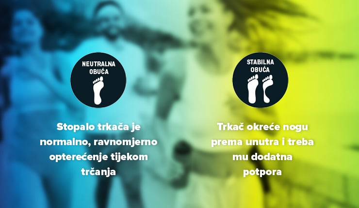 Kad okrenemo stopalo prema van, govorimo o supinaciji. Čak su nam i u ovom slučaju potrebne NEUTRALNE TENISICE . Kad stopalo okrenemo prema unutra, govorimo o pretjeranom pronaciji, pa nam treba obuća s dodatnom potporom - biramo STABILNU OBUĆU.